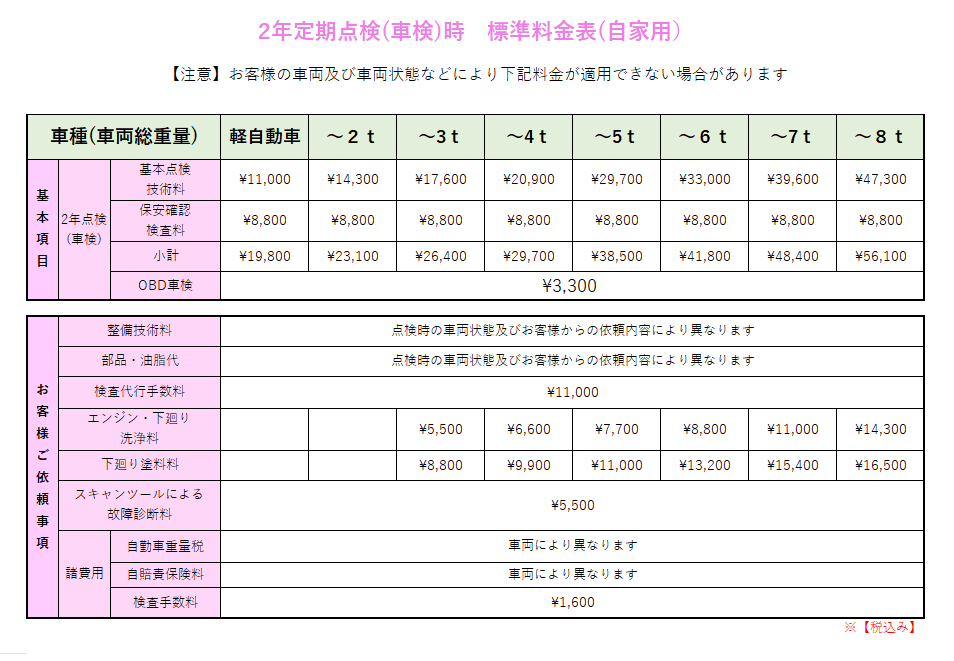 ・車検整備料金